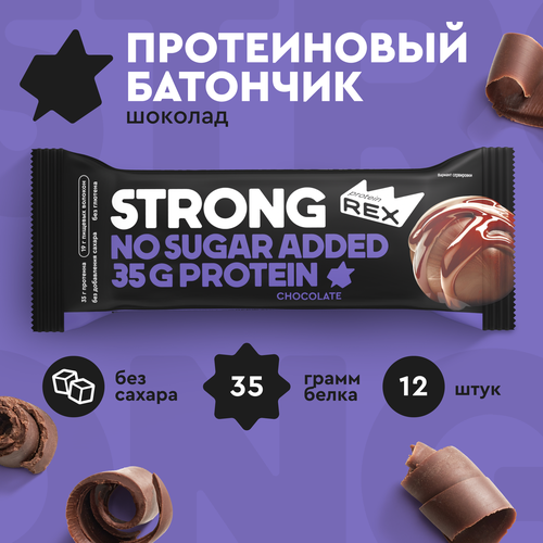 Протеиновые батончики ProteinRex STRONG Шоколад, 12 шт х 100 г, 340 ккал с высоким содержанием протеина, спортивное питание, ПП еда, спортивные батончики без сахара