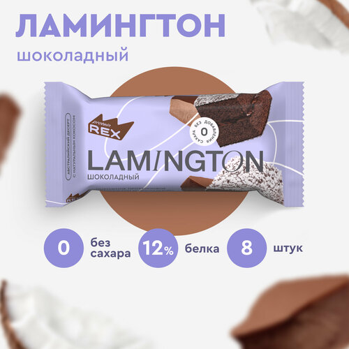 Протеиновые пирожные ProteinRex Ламингтон Lamington без сахара (шоколадный), 8 шт х 50 г, 190 ккал, спортивное питание, спортивное печенье, батончики