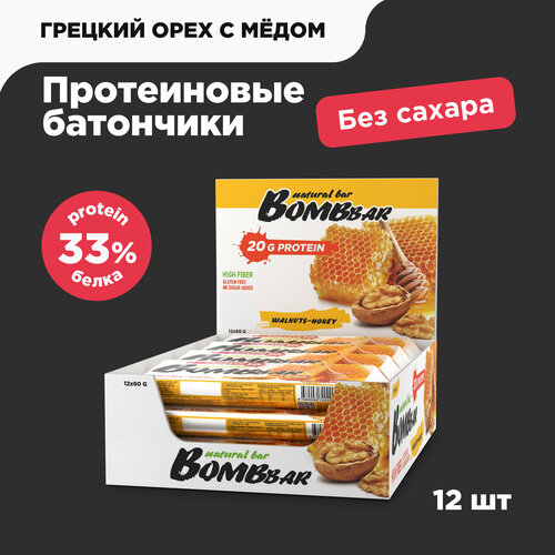 Протеиновый батончик Bombbar без сахара, Грецкий орех медом, 60г х 12 шт.