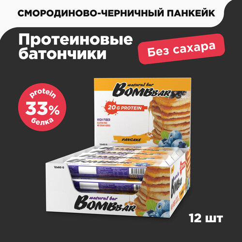 Протеиновый батончик Bombbar без сахара, Смородиново-черничный панкейк, 60г х 12 шт.