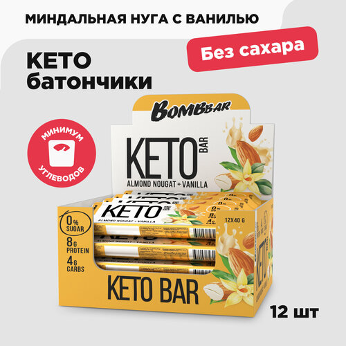 Протеиновый батончик BOMBBAR Keto, 480 г, миндальная нуга с ванилью
