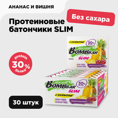 Протеиновый батончик BOMBBAR Slim + Vitamin C и L-carnitine, 1050 г, ананас / вишня