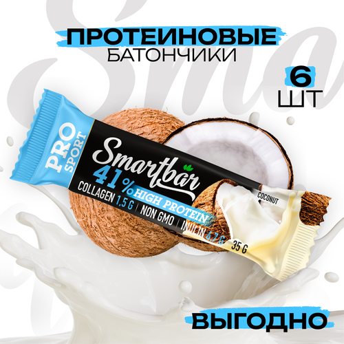 Протеиновые батончики SmartBar Protein Pro 41% "Кокосовый" 35г (6шт)