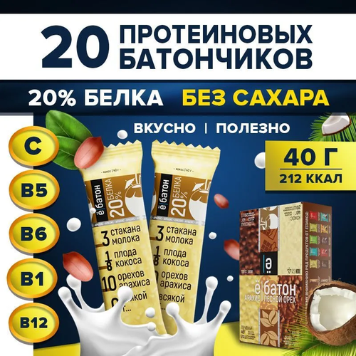 Ё|батон 20%, 1000 г, белый шоколад, кокос с арахисом
