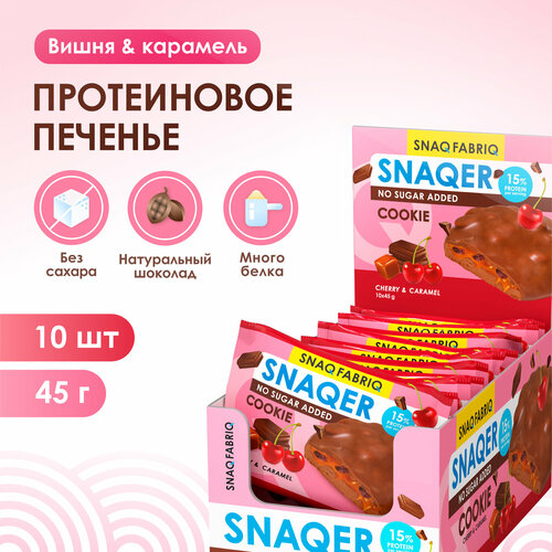 SNAQ FABRIQ Протеиновое печенье в шоколаде SNAQER "Вишня и карамель", 10 шт х 45 г