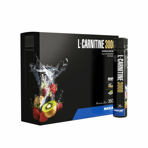 Карнитин Maxler L-Carnitine 3000 - Клубника-киви, 14х25мл - Концентрированная жидкая формула - 3000 мг в порции