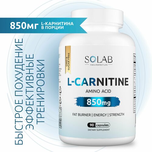 SOLAB Л-карнитин, 90 капсул, L-Carnitine жиросжигатель спортивный для похудения