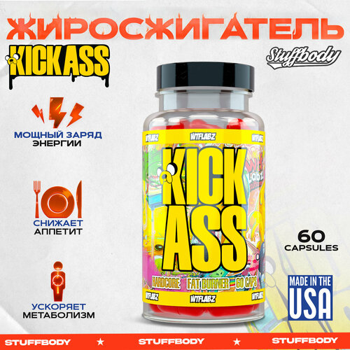 Kick Ass — самый сильный жиросжигатель в капсулах бренда WTF Labz в новой формуле. Предназначен для быстрого похудения за счет создания дефицита калорий, улучшения обмена веществ и липолиза жира. Повышает уровень энергии и четко контролирует аппетит, не позволит потребить лишних калорий. Жиросжигатель Кик Асс содержит смесь стимуляторов в высоких дозировках и вспомогательные компоненты для эффективного сжигания жира. Увеличивает общую производительность и помогает справиться с тяжелыми интенсивными тренировками. Идеально подходит для мужчин и женщин, которые хотят вести здоровый образ жизни и оперативно снизить вес тела. Средство для похудения на сушке, жиросжигатель для мужчин и женщин, fat burner. Применение для новичков: одну капсулу во время завтрака, для опытных: одну капсулу натощак перед завтраком, вторую натощак перед обедом. Рекомендации: Чтобы избежать бессонницы не принимайте в вечернее время. Снизьте дозировку, если проявились побочные эффекты: тремор, тошнота, головная боль. Не принимайте более двух капсул в течении суток. Сократите ежедневное потребление калорий и углеводов на 40%. Выпивайте не менее 1,5 литров питьевой воды в день.