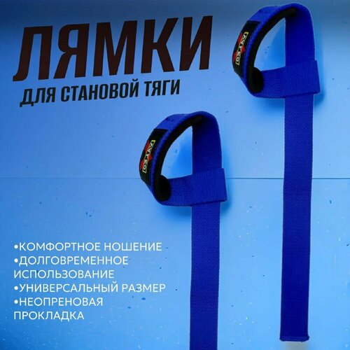 Лямки (ремни) для становой тяги Valeo 65см / лямки на запястье для силовых тренировок синие