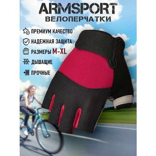 Перчатки для велосипеда без пальцев Armsport, велоперчатки мужские без пальцев, красные с черным, XL
