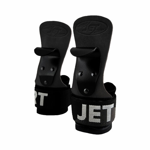 Крюки на руки c манжетой JetSport для тяги и турника из натуральной кожи черного цвета