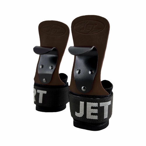 Крюки на руки c манжетой JetSport для тяги и турника из натуральной кожи коричневого цвета