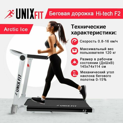 Беговая дорожка UNIX Fit Hi-tech F2 Arctic Ice с бесконтактным управлением No Touch Control, мощность 2,5 л. с, до 120 кг, скорость 0.8-16 км/ч UNIXFIT