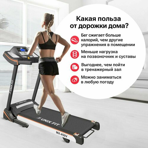 Беговая дорожка UNIX Fit MX-450V, черный/серебристый/оранжевый