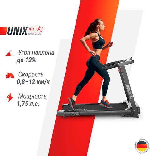 Беговая дорожка UNIX Fit ST-440N с бесконтактным управление No Touch Control, мощность 1,25 л. с, до 110 кг, скорость 0.8 - 12 км/ч, Black UNIXFIT