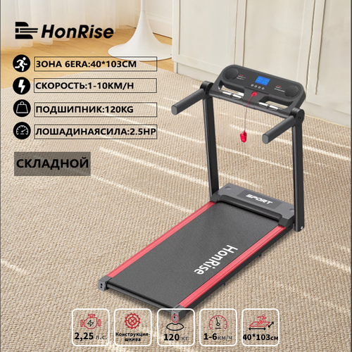 HonRise Беговая дорожка HonRiseэлектрическая складная беговая дорожка для потери жира в домашних хозяйствах с дисплейным экраном, скобка iPad с частотой сердечных сокращений, максимальная скорость 10KM/H