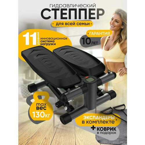 Мини степпер тренажер для дома для ног и ягодиц, гидравлический, 11 уровней нагрузки, чёрный