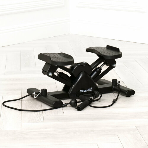 Сайд-степпер XtivePRO изготовлен из качественных материалов - пластика PP и стальной трубы. Благодаря этому он обладает высокой прочностью и долговечностью. Черный цвет стильный и универсальный, он подойдёт под любой интерьер. В комплекте поставляются эспандеры для дополнительной нагрузки на руки.