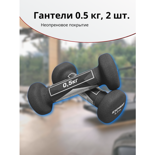 Гантели,2 шт. каждая по 0.5 кг, гексагональные, неопреновое покрытие, чёрные.