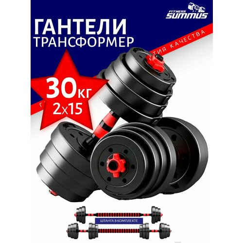 Гантели 30 кг разборные пластиковые 2 шт. по 15 кг с коннектором для штанги, диски, пластик гриф, Summus, 3-600-009