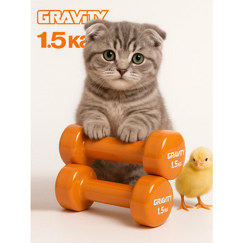 Гантели с виниловым покрытием Gravity, оранжевые, 1.5 кг, пара