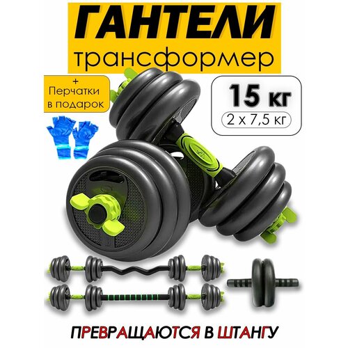 Гантели трансформер с прямым и EZ грифом для штанги набор 15 кг