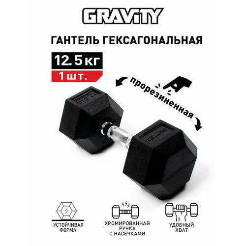Гексагональная гантель Gravity, вес 12.5 кг, цвет черный