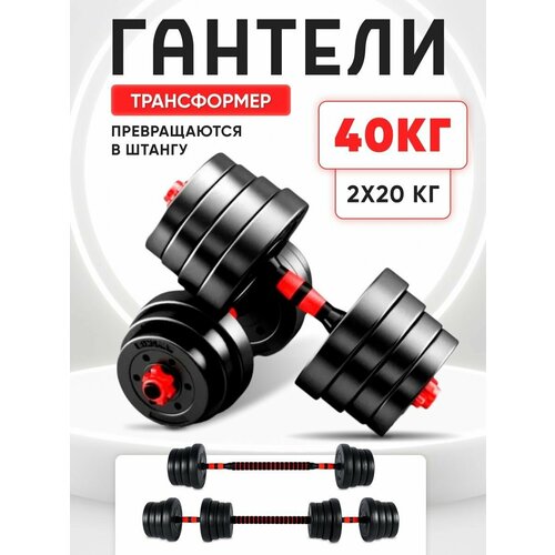 Kulak Гантели набор 2 гантели по 20 кг+штанга. Гантели разборные(цемент/пластик/метал), общий вес 40кг