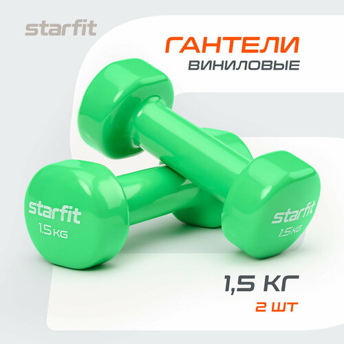 Гантели для фитнеса виниловые набор гантелей STARFIT DB-101 1,5 кг, зеленый, 2 шт