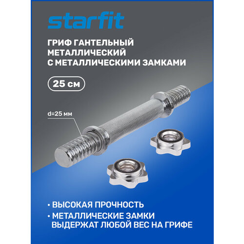 Гриф гантельный для штанги STARFIT Core BB-107 25 см, d=25 мм металлический хромированный