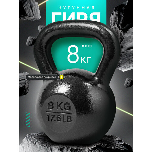 Гиря 8 кг чугунная PROIRON для фитнеса, черная, молотковое покрытие