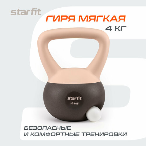 Гиря мягкая STARFIT DB-601 4 кг цельная для спорта фитнеса и кроссфита персиковый серый