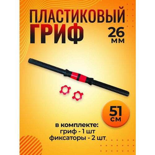 Гриф для гантелей 51 см 1 штука, пластик, стальная труба, d 26мм, гайки фиксаторы