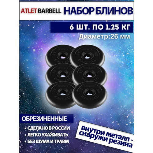 Комплект дисков Атлет (6 по 1,25 кг) 26мм