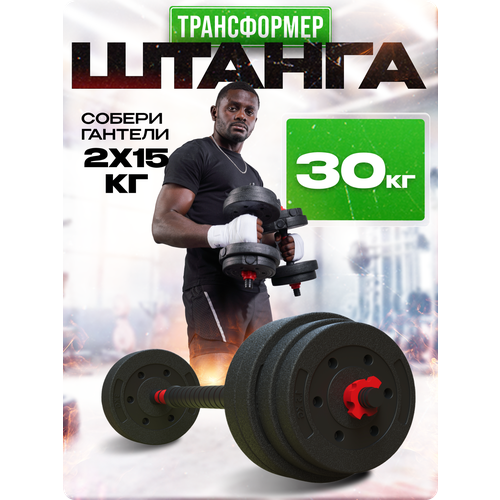 Штанга разборная 30 кг, гантели 15 кг 2 шт. – это ваш личный спортивный тренажер, который поможет вам достичь желаемых результатов в фитнесе и силовых тренировках.