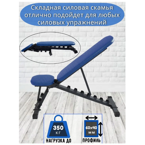 - Мощная профессиональная брендовая скамья теперь в складном варианте с максимально допустимой нагрузкой свыше 350 кг! НЕ имеет аналогов по соотношению цена-качество-функционал-надежность.