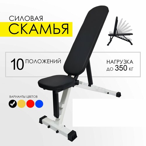Скамья спортивная RP для жима (свыше 350кг) белый каркас с черной обивкой