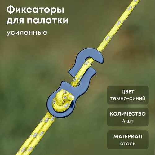 Фиксатор троса палатки, 1.5мм, синий глянец, 4 шт.