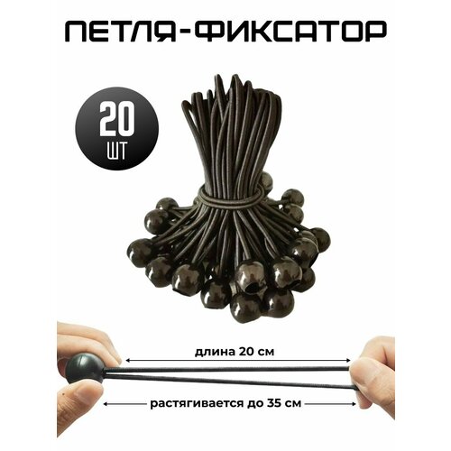 Эластичная петля с фиксатором - это резиновый шнур - жгут с нейлоновым покрытием и с пластиковым шариком фиксатором на конце, устойчивый к разрыву. Такой шнур подойдет для крепления тентов тарпаулин, тарпикс, садовых шатров, пленки, сетки для строительных лесов, навеса для кемпинга и прочих укрывных материалов к опоре. Шарик равномерно распределяет нагрузку на люверс. Ограничитель имеет универсальный диаметр, поэтому петля - растяжка подойдет на любой полог, брезент. Диаметр шнура - 4 мм, диаметр шарика - 29 мм. Длина петли 20 см, растягивается до 35 см. Как известно, люверсы являются самым слабым местом строительных тентов. Порывы ветра быстро разбалтывают место крепления люверса. Полиэтилен вокруг него растягивается и люверс может вырваться из тента. Петля фиксатор продевается в колечко и, пружиня, защищает от повышенных нагрузок, возникающих при порывистом ветре. Фурнитура для тента используется как эластичный шнур для тента, вместо веревки. Этот шнур позволяет легко произвести монтаж или демонтаж укрытия или чехла на палатку. Крепеж необходимый атрибут для сада, дачи или огорода.