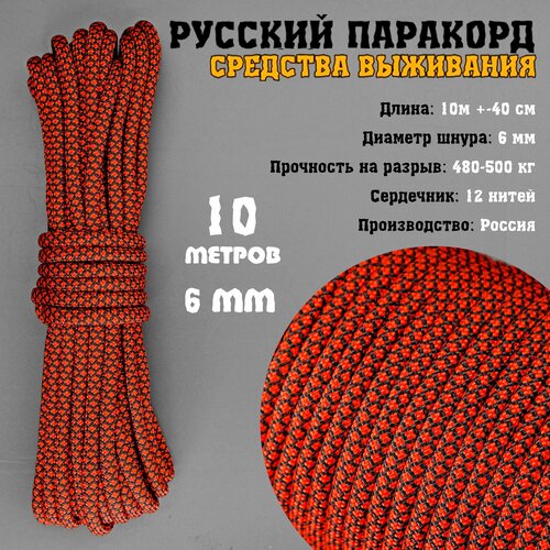 Русский паракорд 6мм (Paracord IV-750) Черно-оранжевый ромб (10 м)