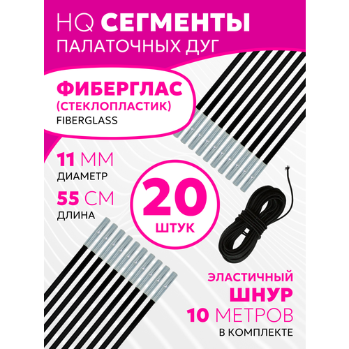 Сегменты дуг для палатки (Ø 11 мм, длина 55 см, фиберглас, 20 штук) + эластичный шнур (10 метров)