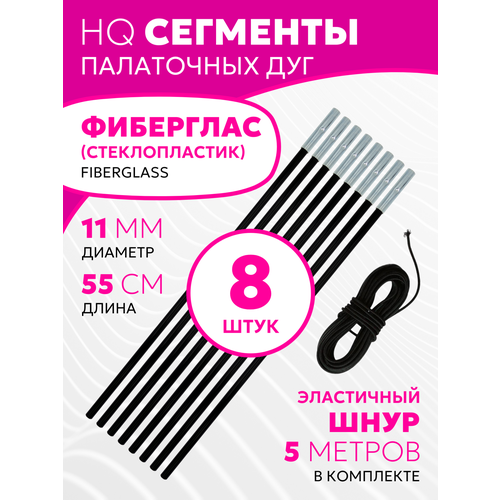 Сегменты дуг для палатки (Ø 11 мм, длина 55 см, фиберглас, 8 штук) + эластичный шнур (5 метров)