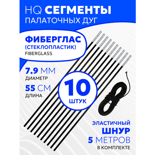 Сегменты дуг для палатки (Ø 7,9 мм, длина 55 см, фиберглас, 10 штук) + эластичный шнур (5 метров)