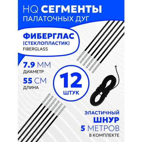 Сегменты дуг для палатки (Ø 7,9 мм, длина 55 см, фиберглас, 12 штук) + эластичный шнур (5 метров)