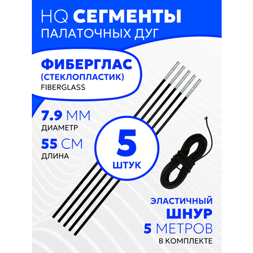 Сегменты дуг для палатки (Ø 7,9 мм, длина 55 см, фиберглас, 5 штук) + эластичный шнур (5 метров)