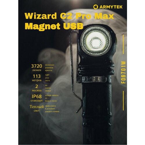 Фонарь налобный ARMYTEK WIZARD C2 PRO MAX F06701W (теплый белый) / Фонарь велосипедный