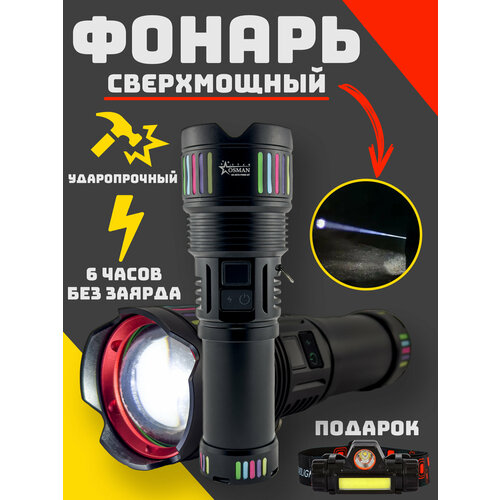 Фонарь RINA TECHNICS 6076, ручной, лазерный, аккумуляторный, 60000 лм