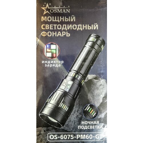 Корпус из износостойкого алюминиевого сплава. Все герметично. В руке не скользит. Срок службы лампы более 180 000 часов. Питание от восемь литиевых батарей 18650 (входит в комплект поставки вместе с проводом заряда через USB). Фонарь оборудован индикатором заряда. У фонаря самая технологичная линза в своей линейке - что позволяет максимально сфокусировать световой луч и выдавать ярко белый свет. Фонарь заряжается через встроенный USB разъем Type-C.