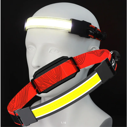 Фонарик налобный аккумуляторный светодиодный FA-XL200 (гибкая COB панель + боковой светодиод, датчик движения, водонепроницаемый, зарядка USB) Digital Red