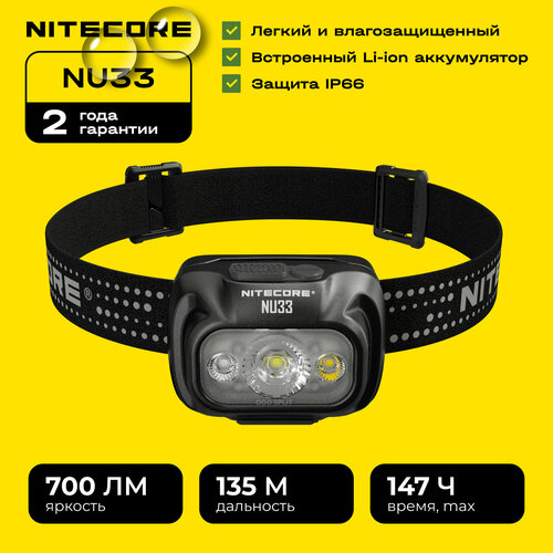 Фонарь налобный Nitecore NU33 светодиодный, фонарик туристический